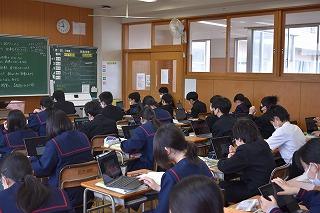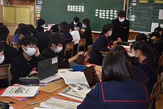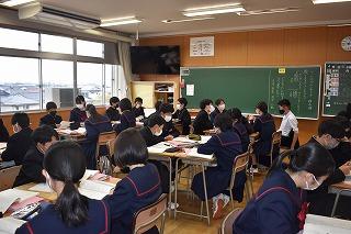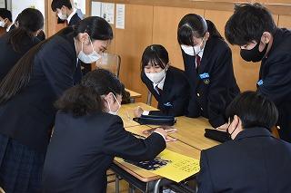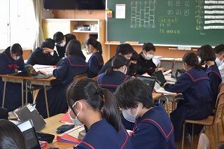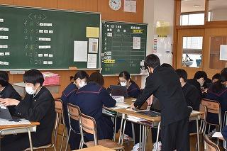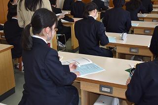 「自分の考えを持ち、表現できる」、本校のめざす生徒像の一つです。まずは課題に対して、既習事項や既存概念を使って自分の考えや意見を持ち、それを交流することで、さらに自分の考えや意見が深まるのですね。今日の授業でもそんな場面が見られました。これから、どんどんよき伝え手、よき聴き手になっていこう。