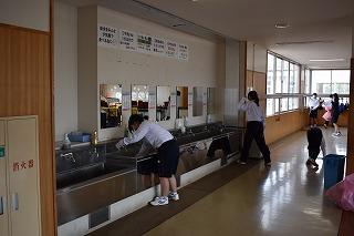 本校は、無言清掃に取り組んでいます。10分間1人1人が、それぞれの担当場所で、無言で集中して清掃に励みます。自分たちの学びの場を美しく整え、その環境を維持していくことは、とてもとても大切なことです。そして、ゴミが落ちていたら、さらっと拾えるそんな素敵な人になってくださいね。