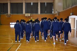 今日は、男子女子それぞれの第1試合を観戦しました。どちらの試合も、終了のブザーが鳴るまで、集中力と気持ちを切らさない懸命な戦いぶりで、これからの伸びしろは大きいと感じました。今大会でのチーム・個人としての成果と課題を、仲間や顧問の先生としっかりと確認して、さらに練習を積み上げていってください。明日も、自分たちの精一杯の力を出し切ることを期待しています。頑張れ! 顧問の村井先生、重島先生、日頃からの指導、本当にありがとうございます。明日もよろしくお願いします。
