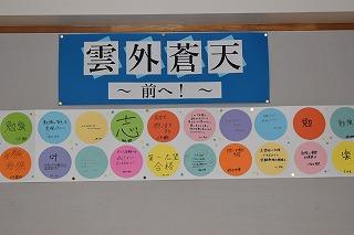 1年生の各教室に、「学級目標」が掲示されています。生徒の皆さん1人1人の思いと担任、副担任の先生の思いが凝縮された素敵な学級目標の数々です。それぞれの学級目標達成に向けてスタートです。1年後の皆さんの成長した姿を楽しみにしています。