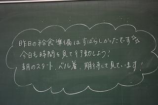 今週最後の給食は、チキンカレー、麦ごはん、ほうれん草オムレツ、海藻サラダでした。カレーライスは、私の大好物です。本当においしかったです。生徒の皆さんの中にも、カレーが大好きという人が多いのではないでしょうか。久しぶりの給食を味わうこと一週間。話に聞いてはいましたが、給食のおいしさに感激です。生徒の皆さんの健康、栄養バランス等に心を配りながら、メニューを考え、調理していただいている調理師、調理員の皆さん、そして栄養教諭の先生に感謝の気持ちを持ちながら、自分の適量を毎日残さずに食べてくださいね。