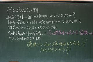 ゴールデンウィークが終わりました。登校前の教室には、先生方からのメッセージ。気持ちを切り替えて、今週のスタートを切りましょう。