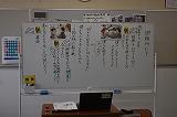 1年生国語科の授業。ヘルマン・ヘッセ作「少年の日の思い出」を学習中です。この物語は、大人になった「現在」の場面と、 過去の「少年の日」の場面とで構成されていて、 少年時代の経験が現在の精神状態に深く関わっているということを、作品の構成や展開から読み取ることができます。