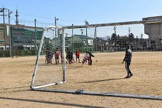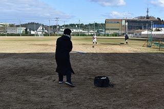 節分の日の土曜の午前中、グランドには野球部とサッカー部の姿がありました。冬場においては貴重なグランドでの練習。空気は少し冷たかったですが、気持ちのいい青空の下で、顧問の先生と一緒に汗を流していました。