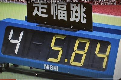 1回目に5m70を跳びトップに立ち、4回目に大会記録を更新する5m84の跳躍を披露、5回の跳躍のうち、一度ファールがあったものの、すべて5m55以上の安定した跳躍でした。