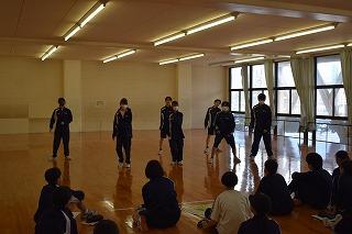 1年生保健体育科の授業。今日は、いくつかのクラスでダンス発表会を行っていました。限られた時間の中で隊列や振り付けを考え、グループで協力して練習してきたことが、本番での皆さんの姿にしっかりと現れていました。照れずに一生懸命にダンスする姿は美しくてかっこいいですね!