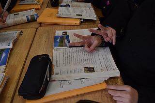 2年生英語科の授業。今日は、富士山に関する紹介記事を読み、どうして富士山は、「自然」遺産ではなく、「文化」遺産として、世界遺産に登録されたのかについて、読み取っていました。英語技能の「読むこと」については、「必要な情報を読み取る」「概要をとらえる」「要点をとらえる」力が必要となります。