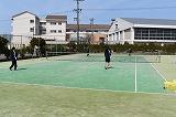 テニスコートでは、女子ソフトテニス部が練習。顧問の先生、部活動指導員の先生の指導のもと、基本の積み上げです。みんないい表情になってきましたね。顧問の先生と部活動指導員の先生との華麗なラリーも見ることができました。さすがです。