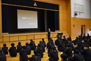 最後に、清掃・美化担当の品川先生から、清掃についての話がありました。美しい環境づくりは自らの手で、ですね。
