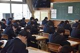 各クラスの様子を少し拝見しました。1年生は、「中学生になって」の作文を書いていました。みんな真剣な様子で、鉛筆を走らせていました。