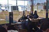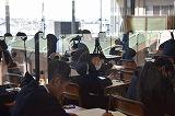 校内では、4階多目的ホールで吹奏楽部が練習。ピリッと引き締まった空気、少し離れたところからシャッターを切りました。