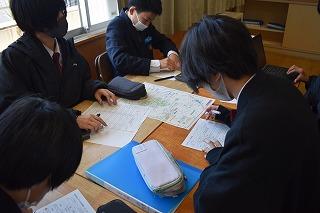 2年生は、5月14日(火)に実施の金沢自主プランの準備を進めています。時間を有効に使って、班員の興味関心がある場所をどのようなルートで回るか思案していました。
