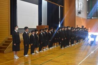 1月1日の能登半島地震を経験し、助け合うことや協力することが大切であるということ、困ったときは周りに頼っていいのだということ、何気なく過ごしてきた毎日が当たり前ではないということを学び、これからの生活に生かしていきたい。これから始まる中学校生活、少し不安に思うこともあるが、先生や先輩方にアドバイスをもらい、周りの仲間と支え合いながら、一歩ずつ前へ進んでいきたい。津幡中学校の教育目標である「自他共栄」を実現できるよう、相手へのあいさつや礼儀などの「当たり前」を実践し、仲間と気持ちよく毎日を過ごすということや、失敗を恐れず小さなことでも挑戦し、努力を忘れないということを実践したい、と力強く語ってくれました。本当に素晴らしい誓いのことばでした。