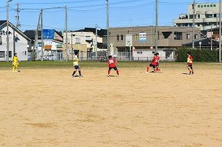 気持ちのよい青空のもと、懸命にボールを追っていました。