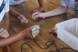 1年生理科の授業。現在、溶解度について学習中。今日は、溶ける量と温度にはどんな関係があるか調べていました。一度溶けたものが、温度を下げることで、再びその姿を現す様子をじっと見つめていました。