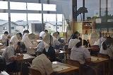 3限目、しらとり学級の授業。8名在籍のしらとり学級ですが、多くが交流学級での授業で、1年生、2年生、それぞれ1名が、理科と社会に取り組んでいました。今日は学習した内容をワークなどで確認していました。教科書を参考に真剣に学習に向かう姿を見ることができました。