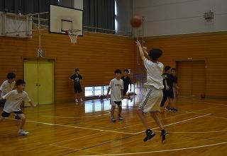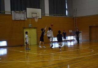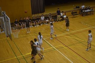 今日は男女バスケットボール部が、中学校体育館で練習。