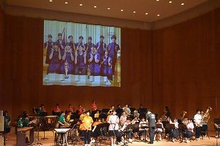 校歌の演奏の後は、「斑鳩の空」。「まほろば」「夢殿」「里人の踊り」「斑鳩のそら」の4楽章構成で、日本人の心にしみる伝統的なメロディーを奏でてくれました。