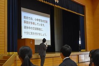 生活については、担当の奥泉先生より、交通ルールを順守し、自分の命、他の命を大切にすることについての話がありました。ゴールデンウイーク期間は、出かける機会もあるかと思います。自他の安全に十分に気を付けてください。