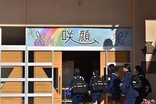 昨日1日(月)の全校集会にて、生徒会執行部から発表のあった、今年度の生徒会目標「咲顔」が生徒玄関前に掲示されました。朝登校してきたある生徒は、生徒会目標に気付き、「わっ、すてき!」とつぶやき、自然と「咲顔」になっていました。今日の朝は、素敵な笑顔での挨拶が多いと思ったのは、私の気のせいでしょうか?
