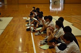 1年生保健体育科の授業。今日はマット運動の発表会でした。三つの技を連続して行いました。練習した成果を発揮しようと一人一人真剣に自分が練習してきた技にチャレンジしていました。クラスメイトの演技が終了した後の温かい拍手も素敵でした。
