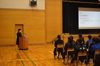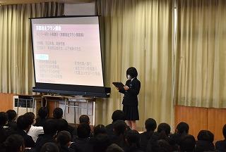 今日の生徒総会では、生徒会長の開会あいさつに続き、各クラス代表から、討議内容と該当する専門委員会に対しての取組提案がありました。その後、取組提案を受け、各専門委員長から、今後の方向性についての回答がありました。