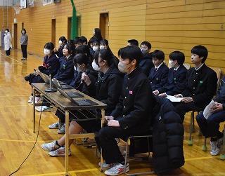 3年生の卒業式練習が始まりました。今日は、卒業証書授与後の合唱隊形を確認し、その後は音楽科の西田千優先生の指導で、国歌、校歌、卒業の歌の練習を行いました。3月14日は、凛とした姿、思いに応える返事、思いを込めた歌声で、共に過ごした仲間への感謝、支えてくれた皆さんへの感謝を伝えてください。みんなで最高のフィナーレを迎えようね。