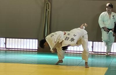 酒井さんは、初戦、試合終盤に技ありを奪い勝利しました。個人戦は、階級別ではなく無差別で行われており、次の試合は、50Kg級の酒井さんにとっては、大変体重差のある選手との対戦となりました。果敢に勝負を挑みましたが、惜しくも敗戦となりました。よく頑張りました。