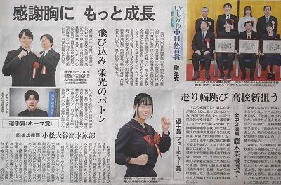 いしかわ中日体育賞 選手賞(フューチャー賞)受賞!