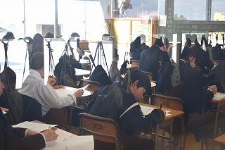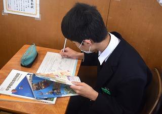 本日、1、2年生は学年末テスト2日目。1年生は国語、2年生は数学を皮切りに、国語・社会・数学・理科・社会の5教科のテストに臨みます。