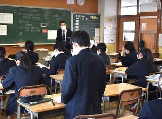 3年生は、公立高校一般入試の出願が始まりました。25日(火)に志願者数公表、その後、志願変更期間を経て、3月4日(火)に確定志願者数が公表されます。公立一般入試に挑む皆さん、不安があるのは当たり前、当日まで最大限の努力をしてください。応援しています。中学卒業後の進路が内定した皆さんは、4月からの新たな生活の場でいいスタートが切れるよう、中学校での学習内容の定着に努めてください。そして公立一般入試等に向けて頑張る仲間への配慮を絶対に忘れないでくださいね。最後まで、共に高め合い、励まし合いながら、最高のフィナーレをみんなで迎えましょうね。