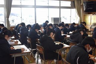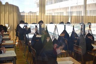 本日4限目から、1、2年生は、学年末テストが始まりました。今日は、技術(1年)、家庭(2年)、保健体育、音楽のテストが行われます。明日26日(水)は、各学年、国・社・数・理・英のテストが実施されます。