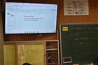2年生英語科の授業。現在、各自が選択した世界遺産についての発表に向けて準備を進めています。今日は、仲間の進行状況をモニターで共有しながら、自分の紹介に使えそうな表現や参考となる表現、適切な表現等について、確認していました。こういう行程を経ながら、発表内容がよりブラッシュアップされていくのですね。