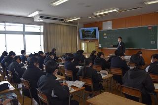 英語の授業では、生徒達の質問にひとつひとつ丁寧に答えくれました。また、世界遺産を紹介するプレゼン発表をアンジェロ先生と一緒に聞いていくれて、コメントもしてくれました。生徒たちは突然の来校に少々驚きながらも、とっても楽しい時間を過ごしていました。