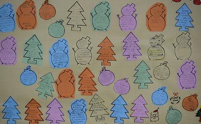1年生各教室前に、1年生プログラム委員会の取組、「感謝のメッセージで飾り付けられたクリスマスツリー」が掲示されています。クラスの仲間へ、あるいは家族の方々へ、ひとりひとりの感謝の思いが詰まったメッセージの数々です。自分に宛てられたものでなくても、読んでいると心がポカポカと温かくなりますね。