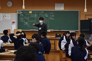 3年生数学科の授業。今日は相似比と面積比の関係について学習していました。3年生の数学科では少人数授業を実施しており、3名の数学科の先生方で担当しています。今日参観したクラスは桶谷先生が担当。いつも丁寧に一人ひとりの学びの状況を把握しながら授業を進めてくれています。桶谷先生は、3年生だけでなく1年生の数学も担当し、大変多くの授業を持っていただいています。本当にありがとうございます。