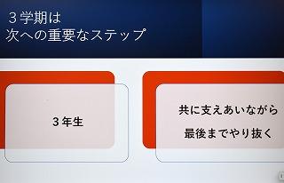 各クラスリーダーからの2学期の振り返り、学年主任の上谷先生のお話の様子。2学期の成果と課題を3学期につなげていこうとする各リーダーの話はお見事でした。