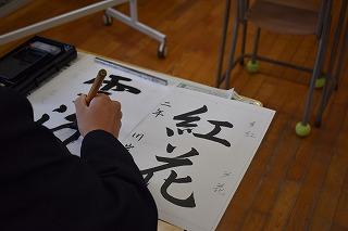 吹奏楽部でも、書初めが飾られていました。ひとりひとりの目標に近づく努力、その過程が、必ずや大きな花となって実を結ぶと信じています。