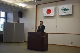 顧問の山本和彦先生から優勝までの経過報告、そして藤本さんが大会の感想や今後の抱負等を述べました。その後、教育長よりお祝いのお言葉と記念品のいぬわし像の贈呈がありました。