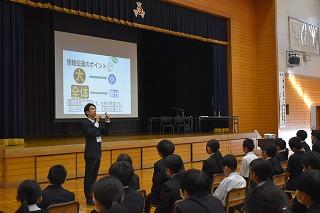 学習担当の鶴山先生からは、全校で取り組んでいる表現力トレーニングについて話がありました。自分の考えを持ち適切に相手に伝えられるよき話し手、相手の考えをしっかりと受け止められる聴き手になれるよう授業も含めてしっかりと取り組んでいきましょう。