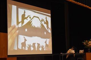 紙切りパフォーマンスの実演や切り絵を使った朗読を披露いただきながら、これまでに至る道のり『小学生の頃は人前で発表するのが苦手。中学時代はテニス部、自分の進路について考え始める。高校生になり、絵を描く仕事をしたいとう夢を持つ。毎日一生懸命絵を描き、美術大学に進学。絵の仕事を探しながら、父の仕事を手伝う中で、お客さんを喜ばせようと目の前ではさみを使って切り絵をつくったことがきっかけとなる。病院にも勤務。患者さんに切り絵をプレゼントし、喜ぶ患者さんの顔を見て、切り絵を仕事にすることを決心。たくさんの研究と失敗を繰り返しながら技術を身に付け、人を笑顔にする切り絵を仕事にすることができる。一番うれしいことは、子ども達に切り絵を教え、伝えること。』を振り返っていただき、これからを生きる子ども達に向けて、大切なメッセージを届けていただきました。『自分の好きなことに、自信を持って、自分を信じて、続けること』