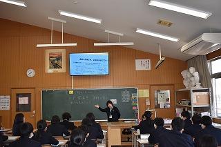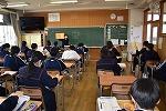 3年生英語の授業。今日は、"What makes you happy?" の表現を学習していました。参観したときはちょうど、ペアでお互いに尋ね合っているところでした。私も1人の生徒に尋ねてみると、"Listening to music makes me happy."と上手に応えてくれました。あなたなら、"What makes you happy and Why?"と聞かれたら、どう答えますか。