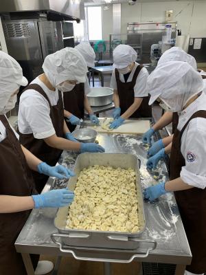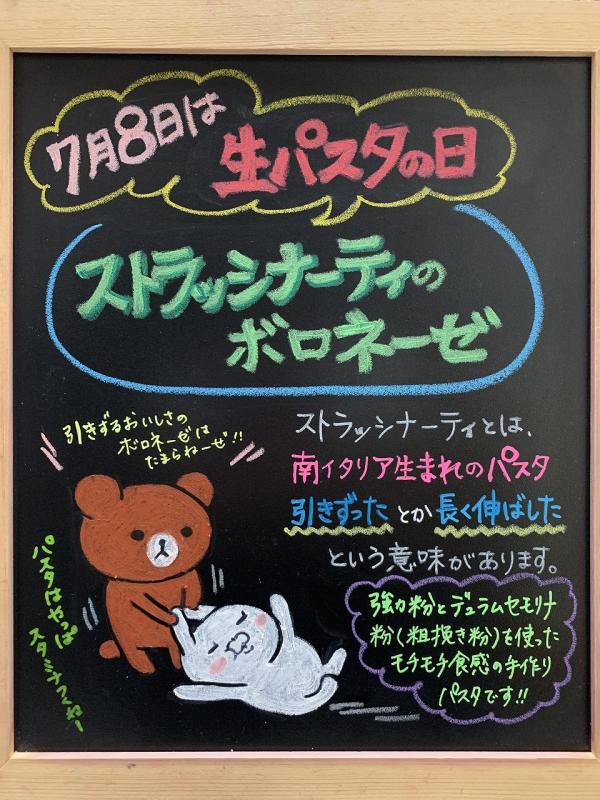7月8日は「な(7)まパ(8)スタの日」です。生パスタの日にちなみ、給食では生パスタを手作りしました。