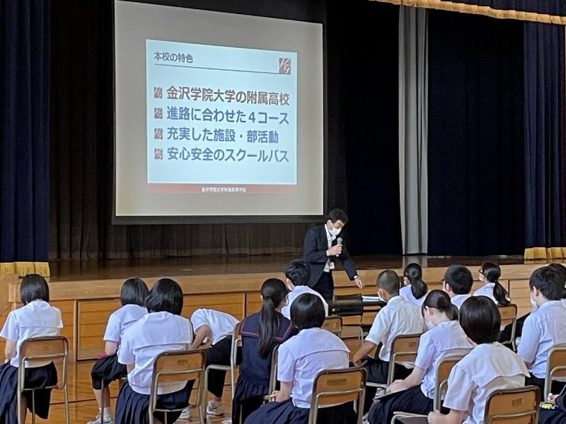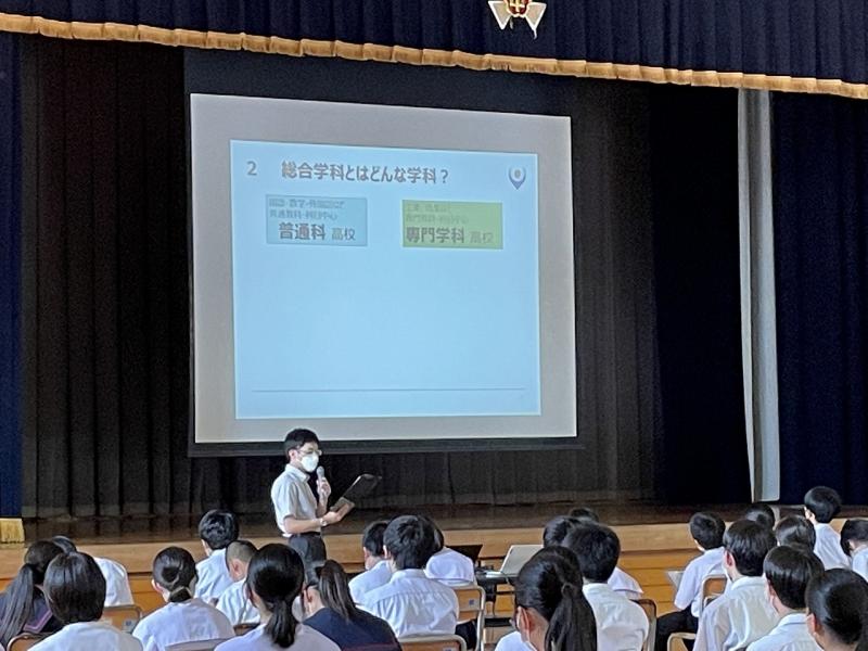 6/23(木)の5・6限目に3年生徒と全学年の保護者を対象に、高校説明会を開催しました。次の高校の先生方からご説明をいただきました。