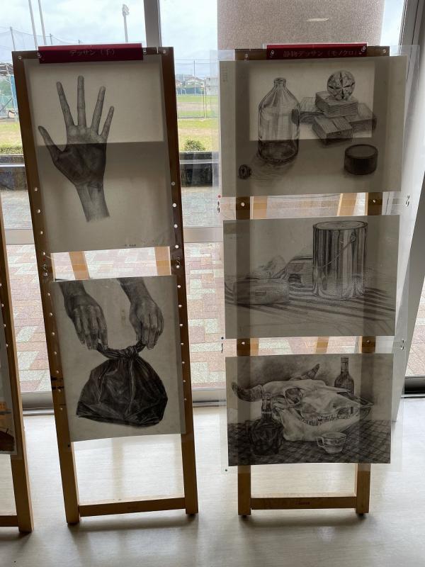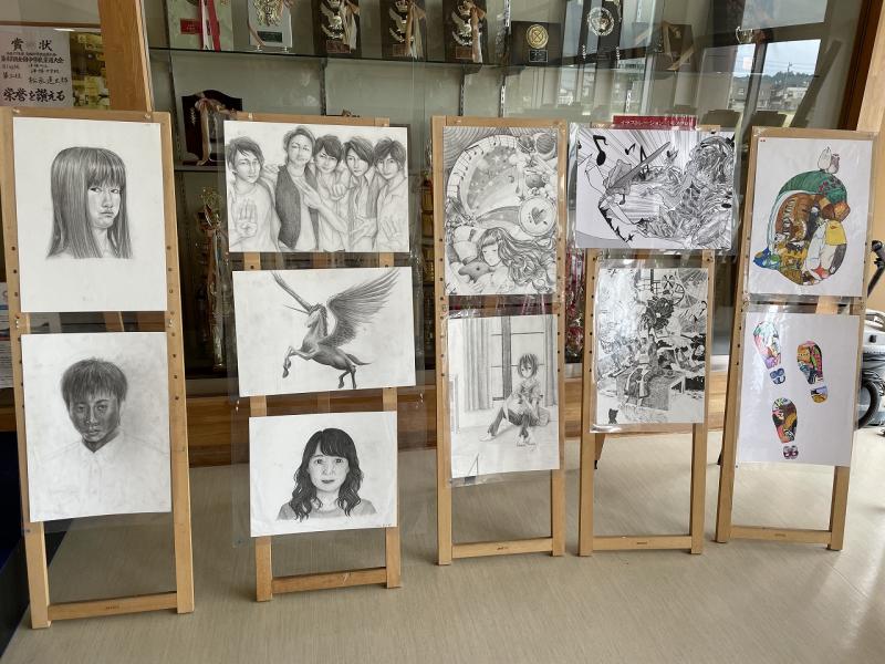 今週から本校生徒ホールにおいて、金沢学院大学附属高校の生徒による美術作品が展示されています。下校時に、何人かの生徒が足を止めてじっくりと見ています。金沢学院大学附属高校の皆さま、ありがとうございました。