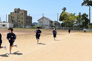 1年生保健体育科の授業。中距離走の記録測定を行っていました。懸命に走る姿に、仲間からの「ガンバレ!」の声がグランドに響いていました。同じグランドで別競技の記録測定を行っていた2年生も、1年生に声援を送ってくれていました。とても素敵な光景でした。