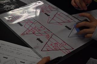 3年生理科の授業。生態系について学習中のようです。既習事項の食物連鎖、食物系図を確認し、「ある動物が一時的に増えても生態系のバランスは保たれる。どんな過程を経て、バランスを保つのか」「どのようなときに生態系は崩壊すると考えられるか」について、個人、グループで考察していました。最後に、ニホンオオカミの絶滅によってどのような問題が起きているかについて考え、考察での知識・技能が活用できるか確認しました。