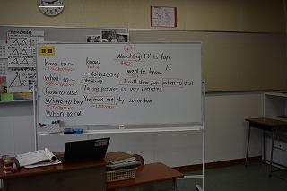 おおぞら学級の英語の授業では、「動名詞(動詞+ing形)」「疑問詞+to不定詞」などの確認プリントに取り組んでいました。