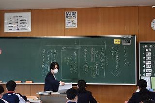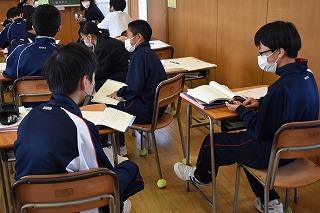1年生国語科の授業。現在、小説「シンシュン」を学習中。今日は課題「ふたりの関係はどう変化したのか?」について、本文中の表現等を根拠に、自分の考えを持ち、交流しました。この小説は、多様性について大切なことを教えてくれる教材ですね。自分の考えを相手にしっかりと伝え、相手の意見にしっかりと耳を傾けることができる1年生の姿でした。