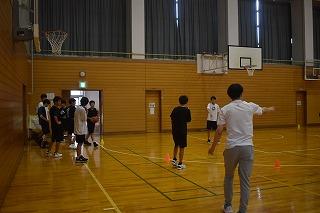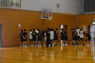 体育館では、男女バスケットボール部が練習。女子チームは、金沢市内及び中能登地区の中学校を招いての練習試合。各地区での新人大会を控え、3中学校とも熱のこもったプレーぶりでした。男子チームは、顧問の先生とフォーメーション等の動きを確認しながら練習していました。